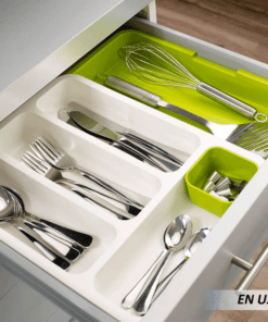 Para tener una buena organización en la cocina, el orden es primordial, incluso para los utensilios de uso habitual. Un buen recurso para ello puede ser este cubertero extensible, adecuado para que los cajones pequeños o grandes estén siempre ordenados.