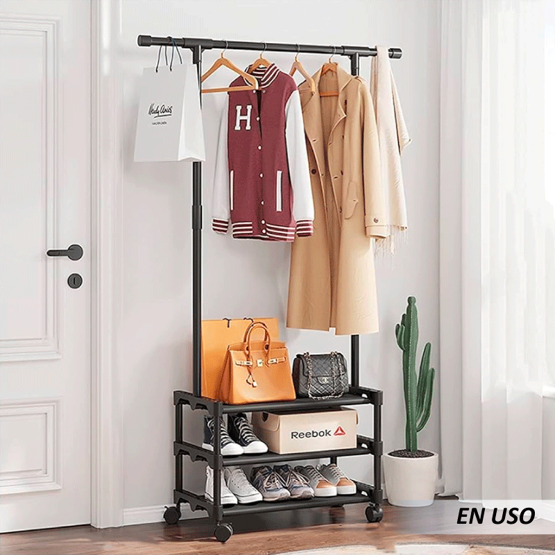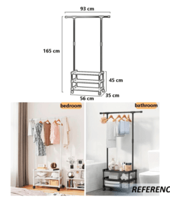 - el riel para ropa tiene una estructura de acero inoxidable y una gran capacidad, lo cual es muy conveniente.la capa inferior es un lugar de almacenamiento ideal para zapatos, botas, etc.