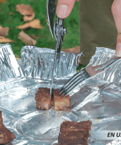 - Para que pueda comer cómodamente con un cuchillo y un tenedor, los cubiertos plegables se pueden dividir simplemente por la mitad en el medio