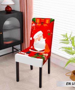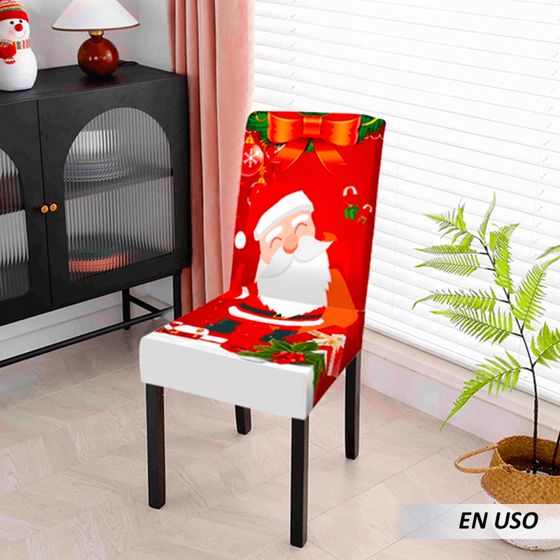 Forro para sillas diseño navideño la tela se siente suave, lisa, cómoda y de alta gama. Los patrones navideños y los colores atractivos de Papá Noel aportan una apariencia hermosa a cualquier mesa y dejan una profunda impresión en los invitados.