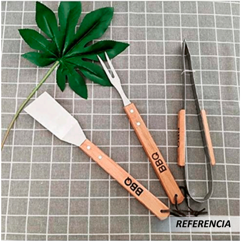 Juego Utencillos para hacer BBQ 3 piezas herramienta de barbacoa utensilio ideal para la cocina al aire libre, barbacoa, incluye: Tenedor, pinzas y espátula