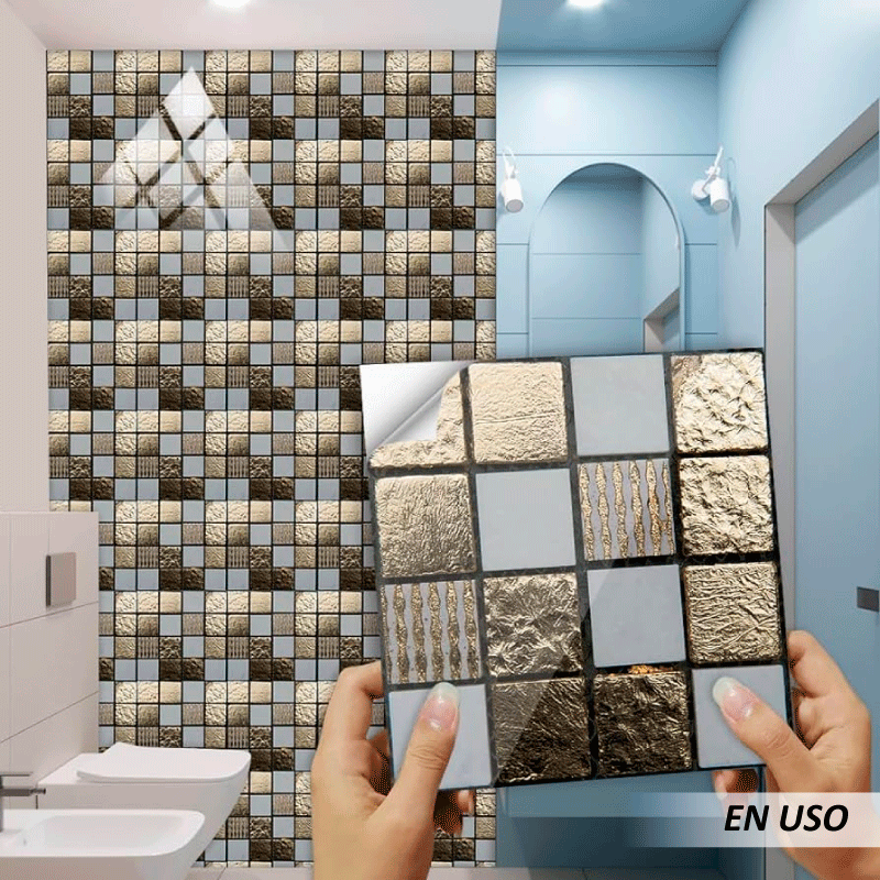 Mosaico dorado adhesivo Las pegatinas de baldosas están hechas de material de PVC sólido, duradero, autoadhesivo y impermeable, fácil de quitar y limpiar.
