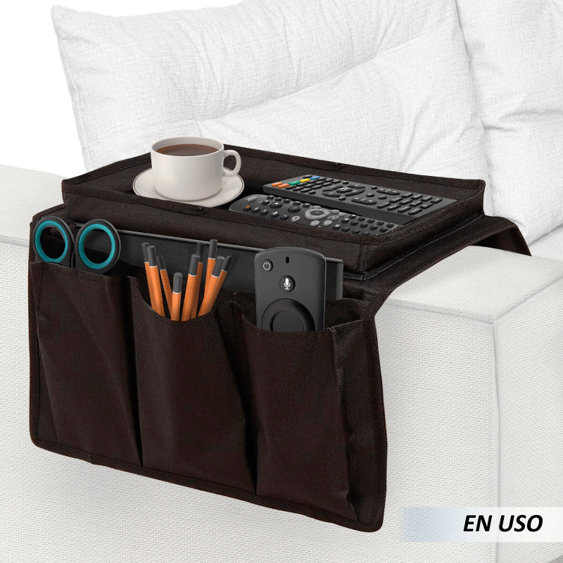 Organizador de control remoto para sillón se mantiene en su lugar con la abrazadera de metal en la parte inferior para abrocharlo en el reposabrazos. Nuestro organizador remoto para sillón reclinable cuenta con una abrazadera de soporte de metal en la parte inferior que es ajustable. El diseño asegurará que se ajuste cómodamente y se adapte a la mayoría de los reposabrazos de sofá y sillón reclinable de 5 a 6 pulgadas de ancho. Antes de realizar el pedido, determina y mide el tamaño del reposabrazos de tu sofá. La mejor opción entre soportes y organizadores remotos, soportes para sillas de brazo, soporte remoto para sillón reclinable, soporte para silla de brazo para controles remotos.