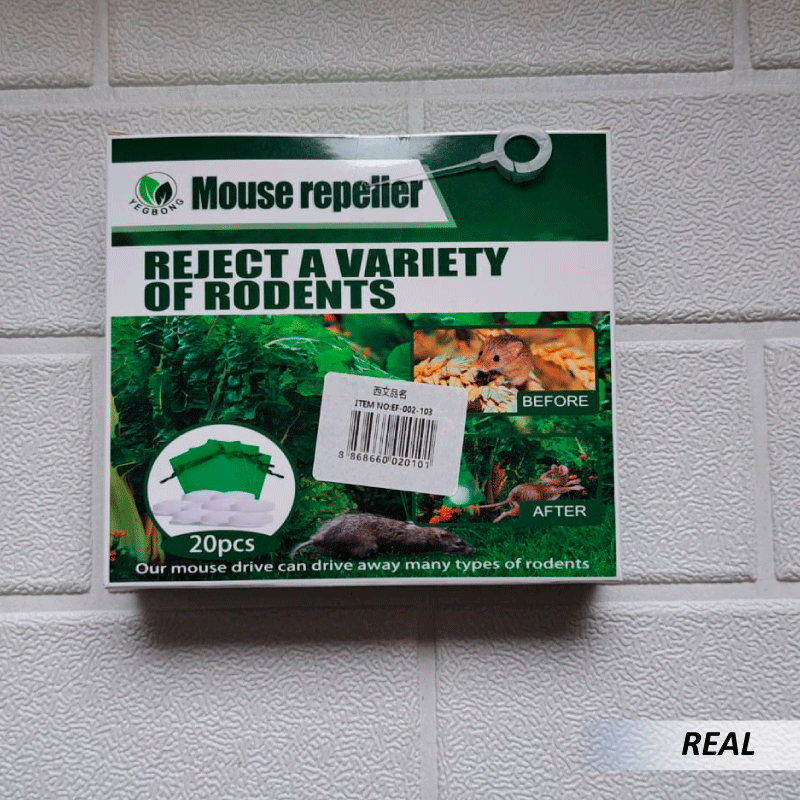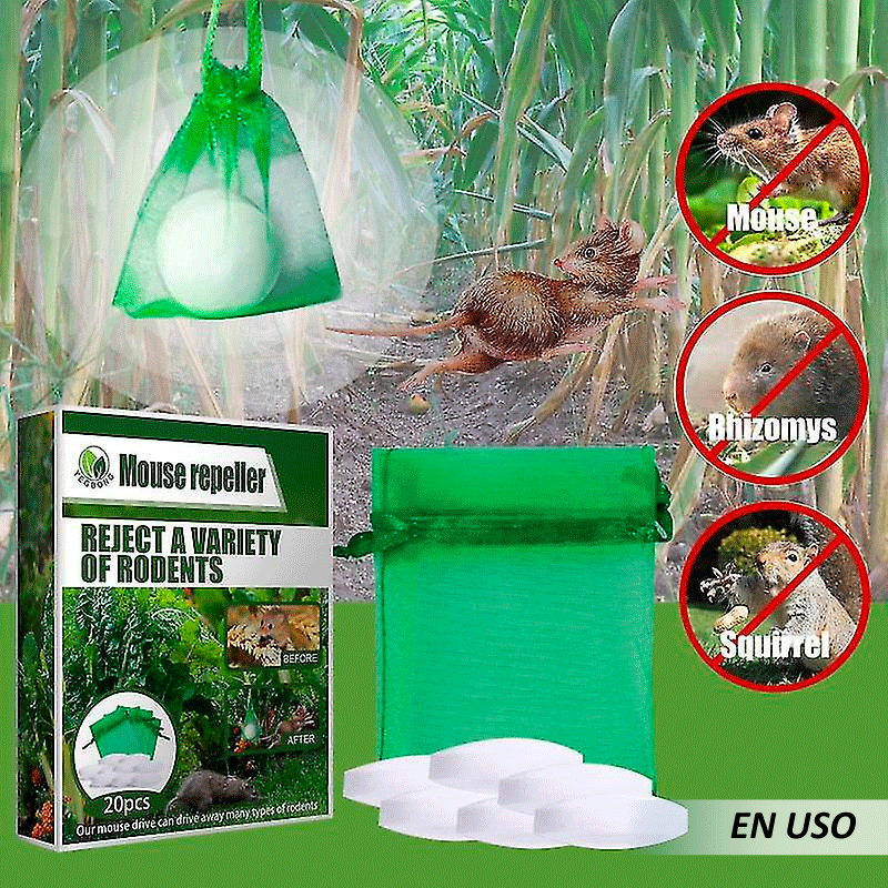 Repelente de ratones 20pcs nuestro repelente de ratones está hecho de aceites esenciales naturales: aceite de menta, aceite de limón, aceite de romero y aceite de clavo. Emite un olor que hace que los roedores se sientan incómodos y los obliga a mantenerse alejados de los ratones