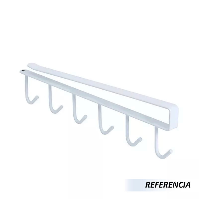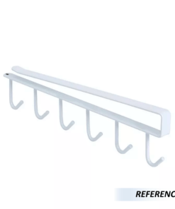 Soporte colgador de tazas sin taladrar, simplemente deslice este soporte sobre una cabina o estante de despensa y tire de la película protectora de los accesorios para ser fijada a la cola final del soporte, ampliando el espacio disponible en armario, armario, cocina y más lugares.