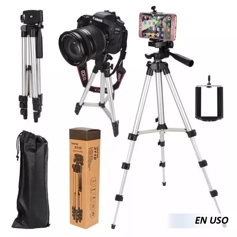 Mejora la estabilidad de tus fotos y videos con el nuevo Trípode extensible para celular y cámara TRIPOD 3110. Trípode de alta calidad, aluminio extensible y super estable. Soportes inferiores reforzados, regulables en altura y con burbuja niveladora para capturar los ángulos deseados de forma equilibrada